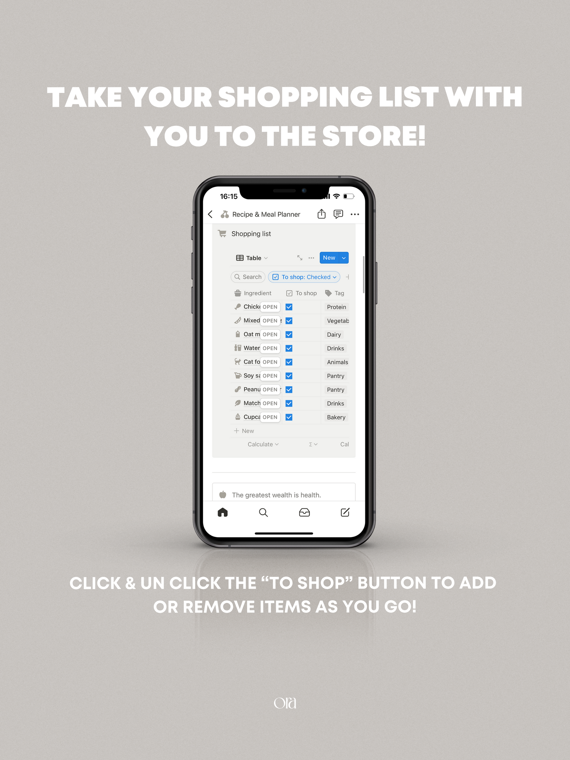 The Recipe & Meal Planner was designed to help you organise your recipes & create a healthy meal plan - add ingredients from your recipes to your shopping list to make sure your get exactly what you need, helping you make healthier choices at the store. Practical yet minimal, with no extra fluff! This planner is an aesthetic experience that inspires you to be healthier.
